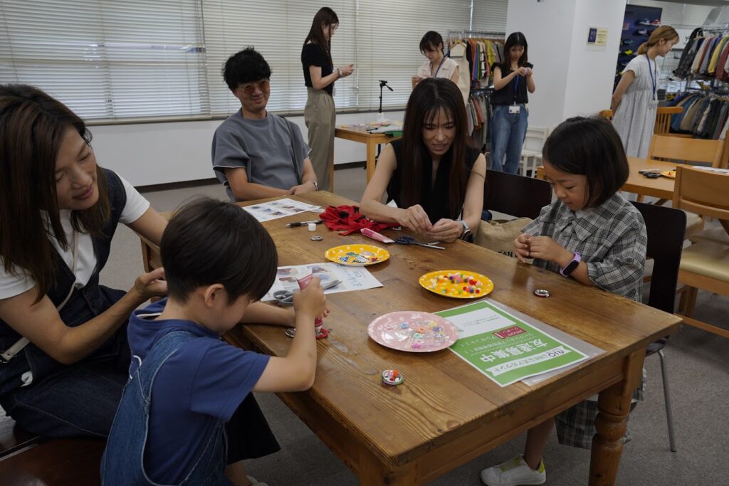 実際に自分や家族が着ていて不要になったお洋服を使って缶バッチを作りながら、ものづくりの楽しさとSDGsについて考える良い機会になりました。