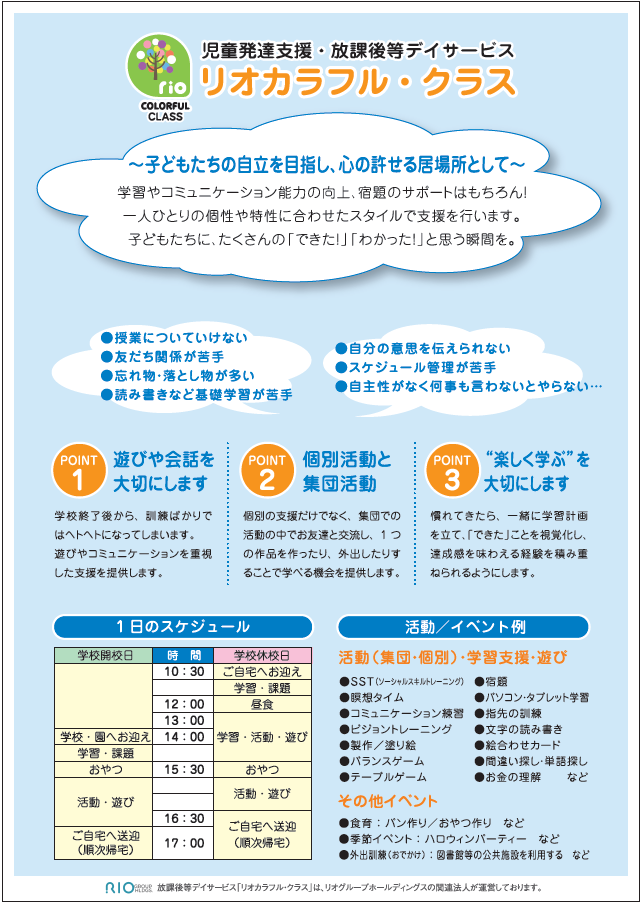 児童発達支援・放課後等デイサービス「リオカラフル・クラス」を開所します。