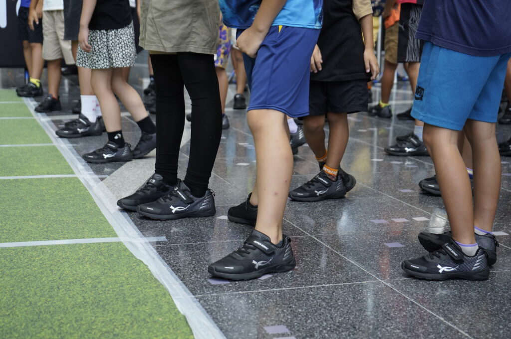 靴底にグラスファイバープレートを搭載した当社の子供靴「SUPER SONIC」