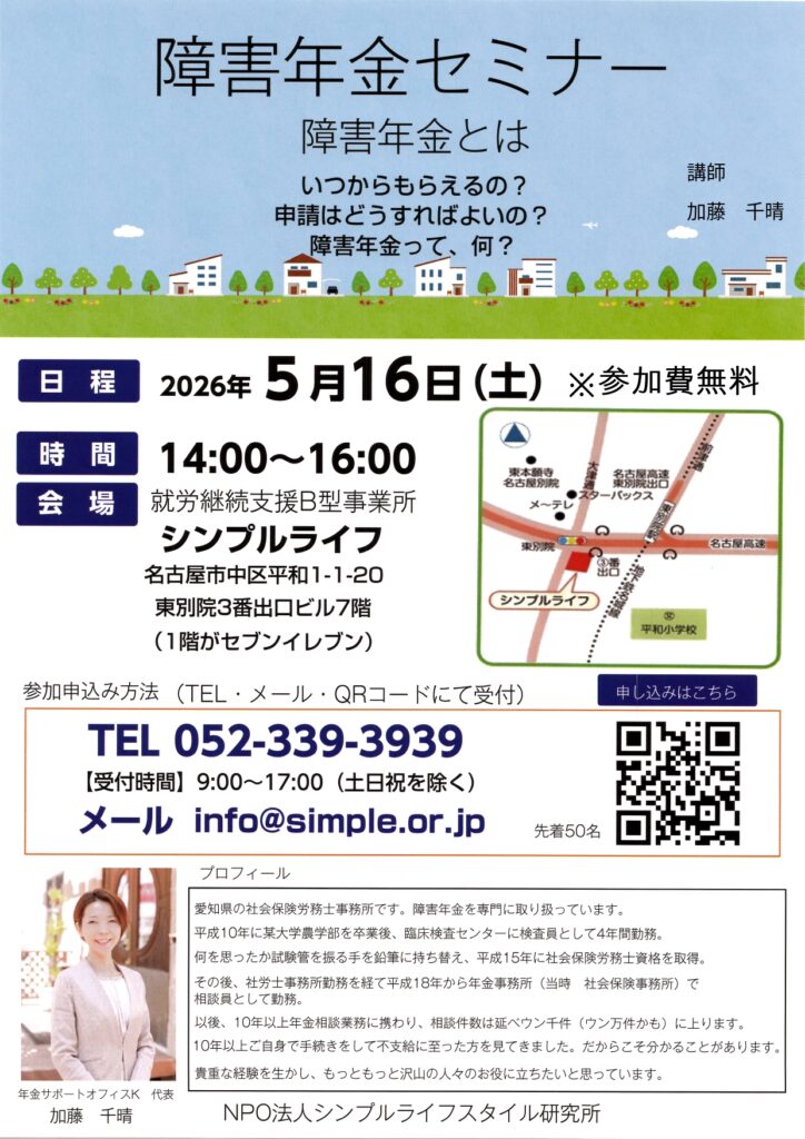 複雑な障害年金の手続きについて、専門的な視点から詳しく学べる貴重な機会です。皆様のご参加を心よりお待ちしております。