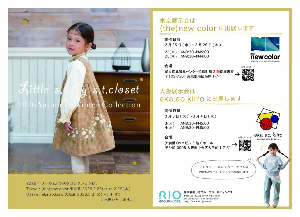 リトル s.t をはじめとするリオブランドの2026年秋冬コレクション展示会をaka,ao,kiiro東京・大阪に出展します。