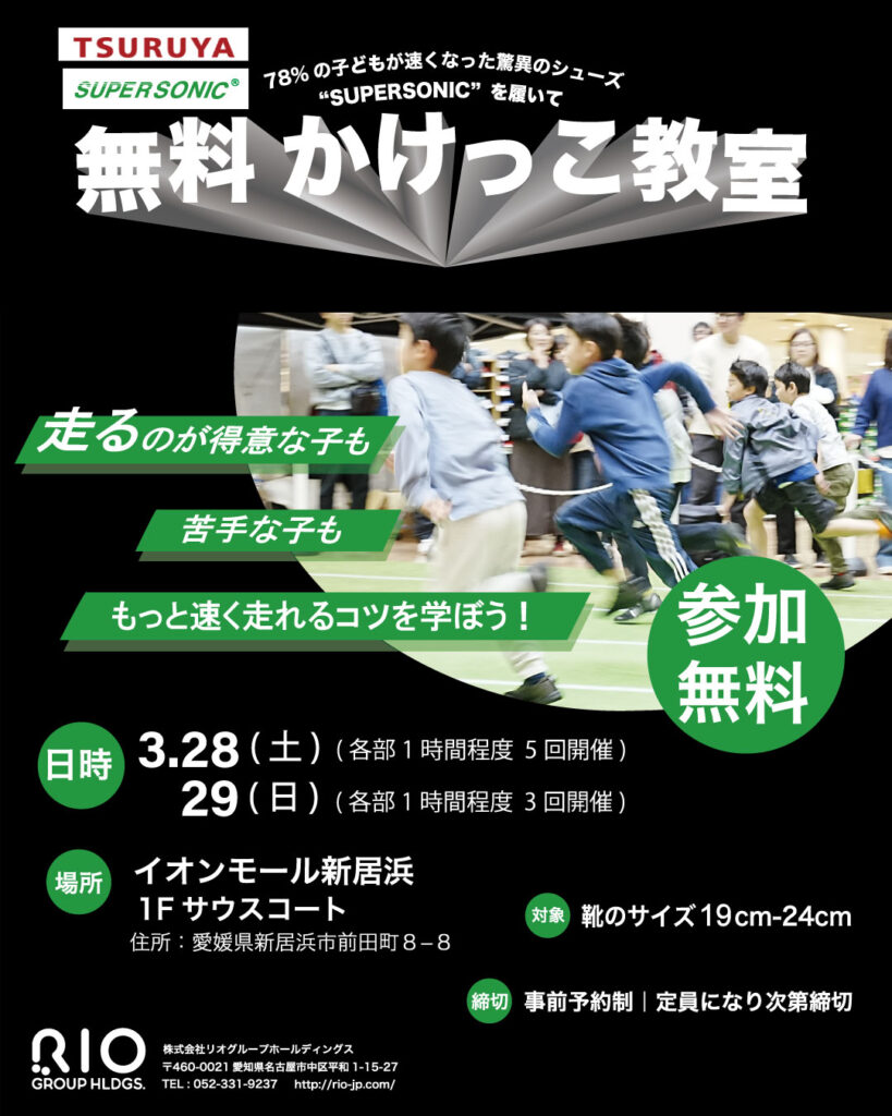 イオンモール新居浜(愛媛県)にてかけっこ教室を開催します