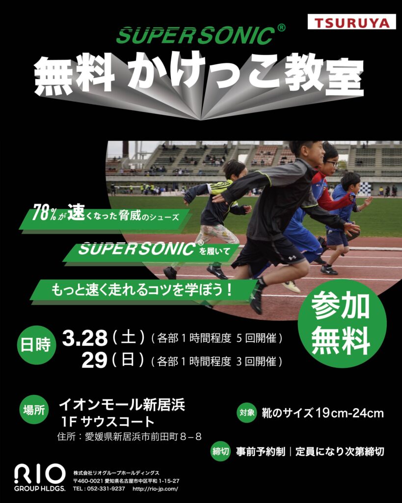 靴底にグラスファイバープレートを搭載した当社の子供靴「SUPER SONIC」を試せるかけっこ教室を開催します。